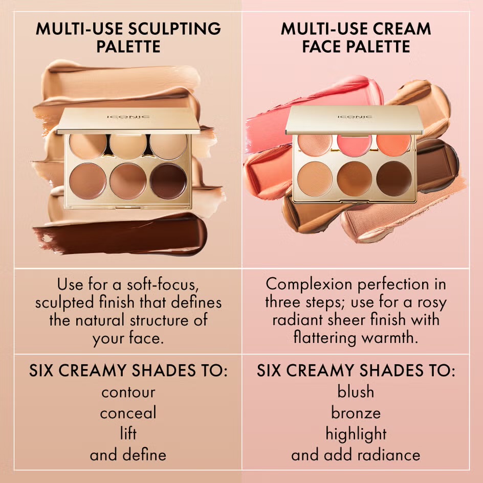 پالت Multi-Use Cream Blush, Bronze & Highlight از برند Iconic London دارای ویژگیهای زیر است: