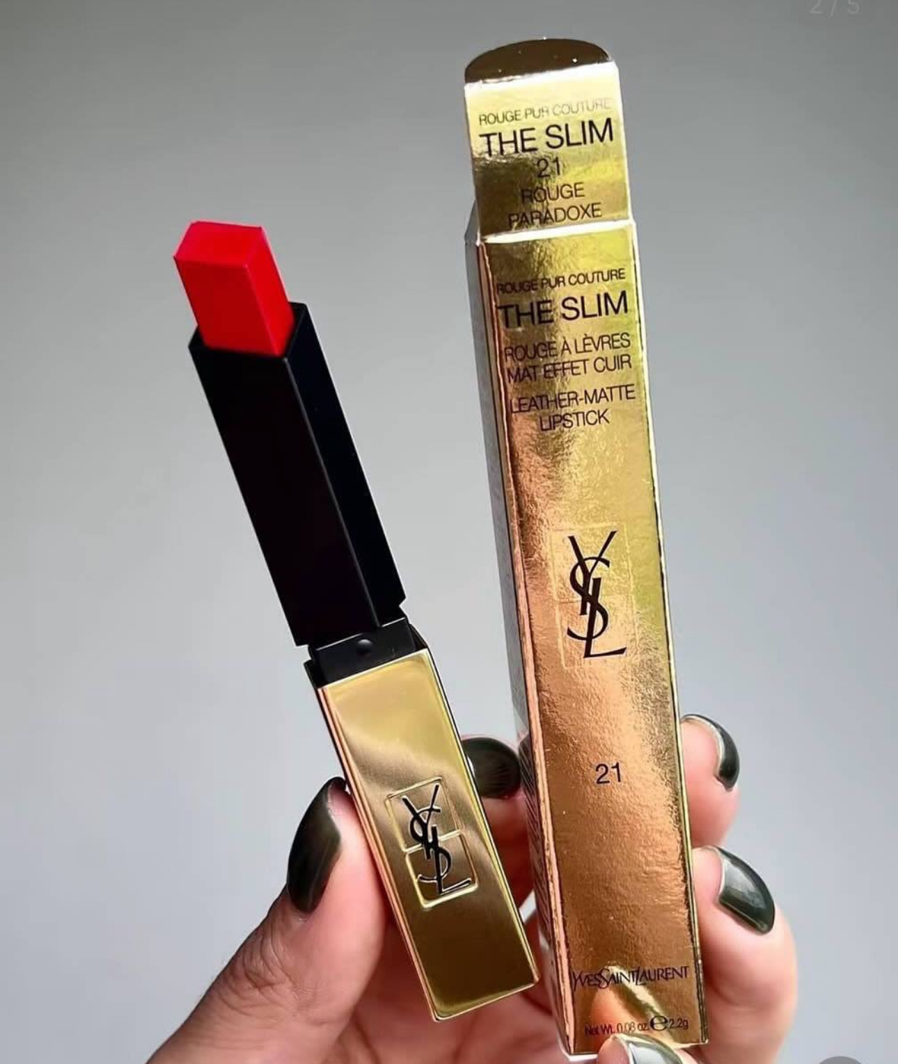 Yves Saint Laurent Rouge Pur Couture The Slim Lipstick – Shade 21 Rouge – Leather-Matte Finish