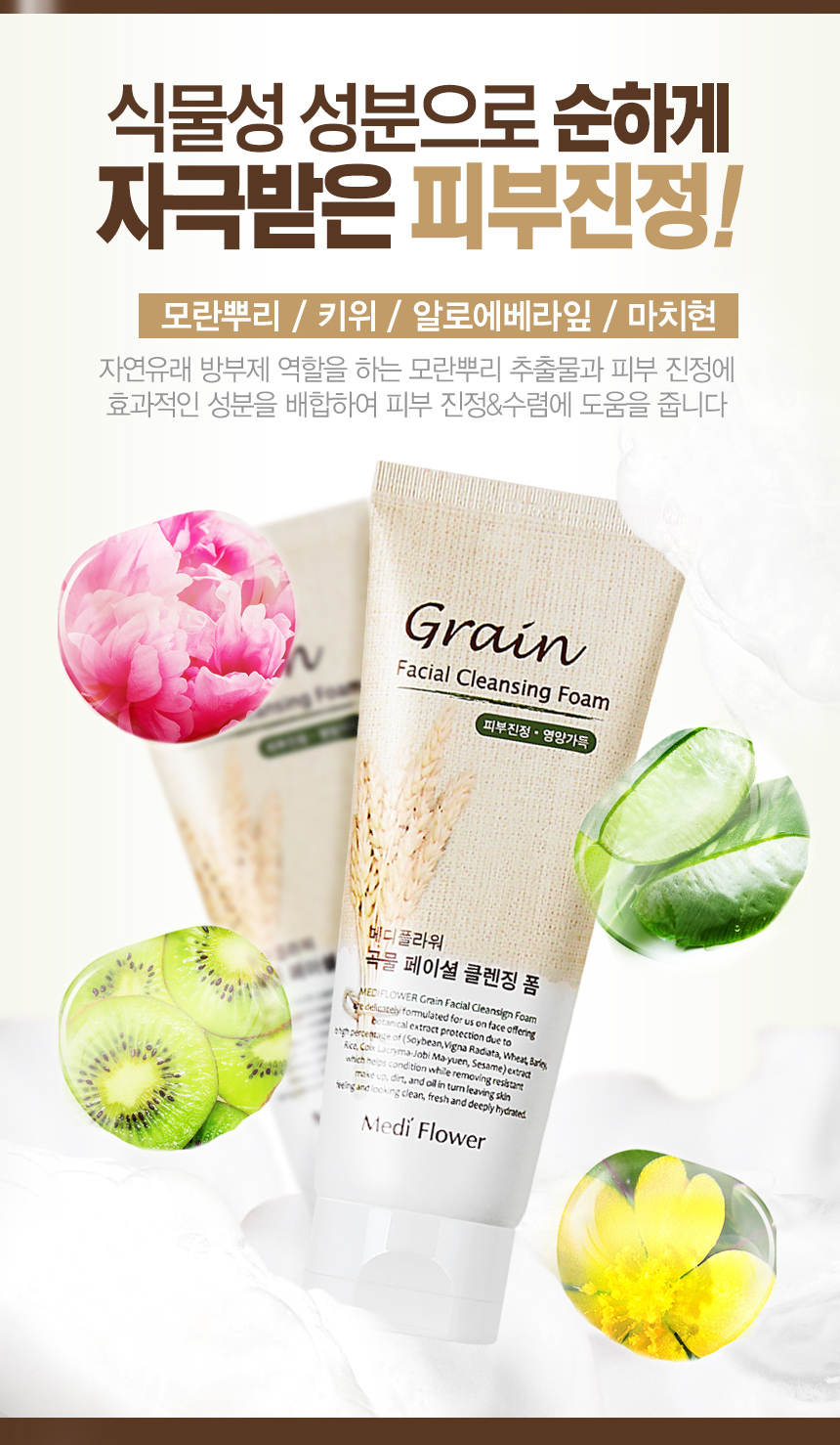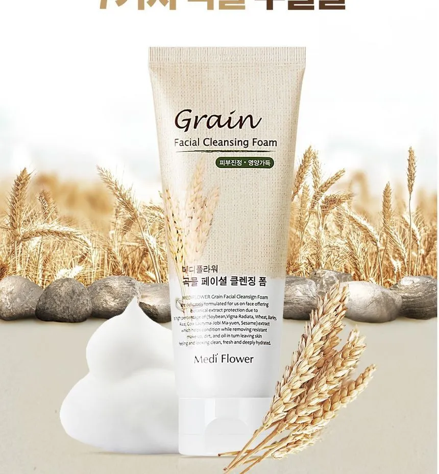 فوم پوششی صورت MediFlower با فرمول کرمی و حاوی ۷ نوع دانه طبیعی، پاکسازی کامل پوست از مصرف، آرایش و آرایش حتی ضدآب را تضمین میکند. این فوم غنی با عصارههای گندم، جو و برنج بعد از پوست را نرم و هیدراته نگه میدارد و از خشکی و پوستهپوست شدن پوست جلوگیری میکند.