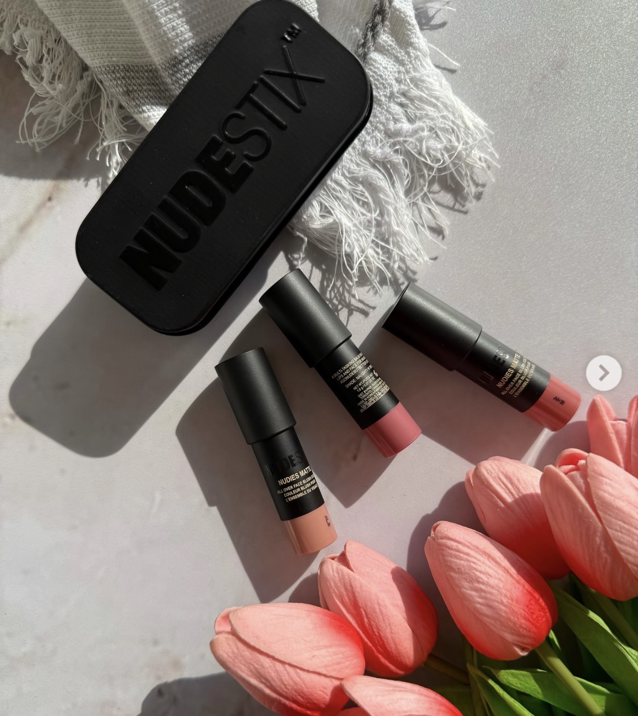 استیک را مستقیماً روی گونه یا لب بزنید و با انگشت یا براش مخصوص نود استیکس محو کنید تا جلوهای طبیعی ایجاد شود