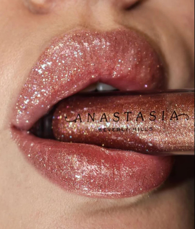 لیپگلاس آناستازیا در رنگ Amber Sparkle یک گلاس براق، خیرهکننده و بسیار شیک است که با تناژ کهربایی-طلایی و ذرات اکلیلی ریز، جلوهای شفاف، حجیم و درخشان روی لب ایجاد میکند.