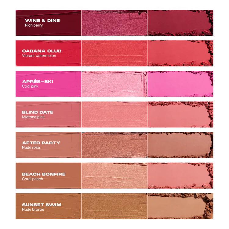 بافتهای نرم و سبک این پالت بهراحتی روی پوست مینشینند و بدون ایجاد سنگینی یا لک، ظاهری یکدست و حرفهای به گونهها میدهند. میتوانید هر بافت را بهتنهایی استفاده کنید یا با ترکیب آنها، رنگها و فینیشهای اختصاصی و دلخواه خودتان را بسازید. این پالت با تناژ گرم و آفتابی Beach Bonfire انتخابی ایدهآل برای آرایش روزانه، میکاپ گلام و استایلهای طبیعی تا حرفهای است